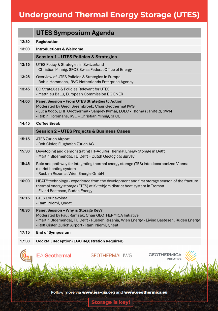 IEA Geothermal and GEOTHERMICA Initiative are pleased to bring you a symposium exploring underground thermal energy storage (UTES).